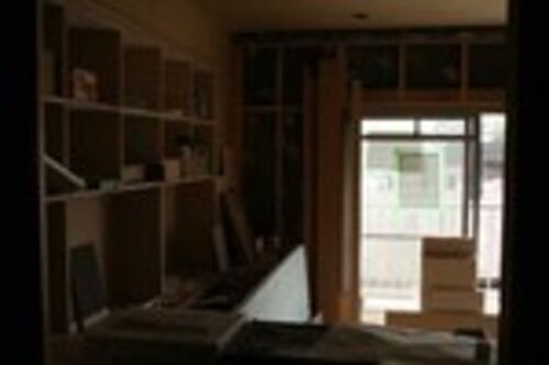 プラスターボード貼り、木枠取り付け、造作工事・・・。 順調に進んでいます。 完成のイメージに近づいてきました。 早く事務所に戻って他物件の図面を書かなければならないのですが、 モノを創る過程を見るのは楽しく、ついつい現場に長居をしてしまいます…