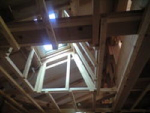 昨日、小山の後、「見沼の家」現場監理へ。 ずいぶんと、木工事が進んだなぁと思ったら、 大工さんが4人も入っていました。 透湿防水シート張り完了。 FRP防水完了。 1階根太組、合板張り完了。 天井野縁施工中。 木枠取り付け施工中。 屋根は、瓦棒部…