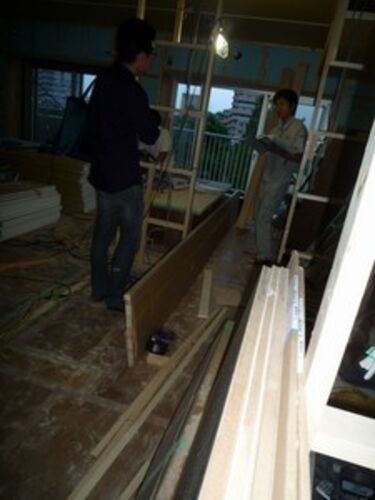 昨日は、夕方から板橋の現場へ。 リビングに使う長さ4m超えの集成材カウンター。(写真中央) 監督さんが階段で7階まで運び込んで頂いていました。 有難いことです。 (click!)奥山裕生設計事務所