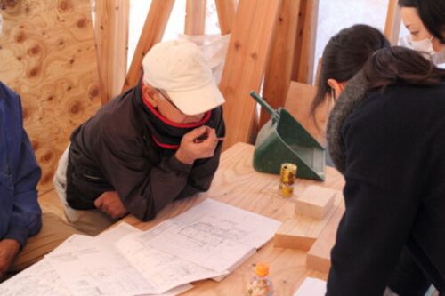 〜今日はスタッフブログの日です〜 今日は「富士見の家」現場監理に行って参りました。上棟から半月経った現場では、木工事が本格化。棟梁からも次々と質疑がなされます。 ↑先輩のサポートを受けつつ、質疑応答する新人の私。まだまだ緊張していますが、監督…