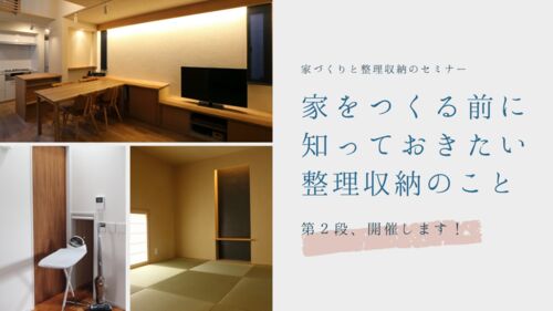 ~今日はスタッフブログの日です~ 昨日、「家をつくる前に知っておきたい整理収納のこと」セミナーが無事に終わりました。お越しいただいた皆様ありがとうございました! そして、早速ですが、11月25日(水)に第2弾を開催いたします。実は、昨日のセ…